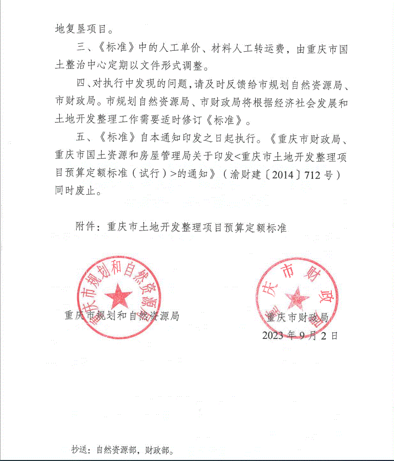 渝規(guī)資〔2023〕433號 重慶市規(guī)劃和自然資源局 重慶市財(cái)政局關(guān)于印發(fā)《重慶市土地開發(fā)整理項(xiàng)目預(yù)算定額標(biāo)準(zhǔn)》通知.pdf